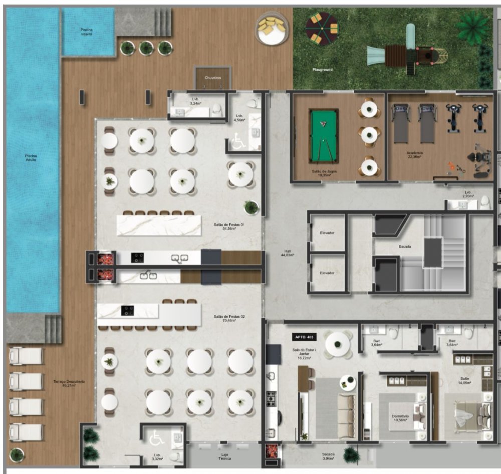 Apartamentos com medidas de 81.03m² até 152.86m², sendo: