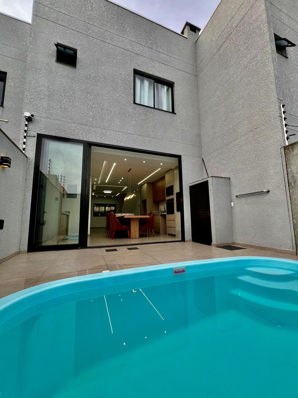 Área nos fundos com piscina;