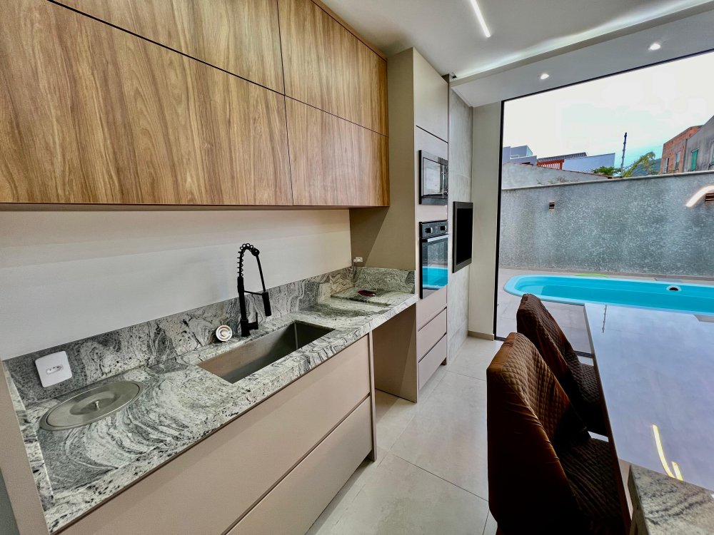 Sala e cozinha integradas;