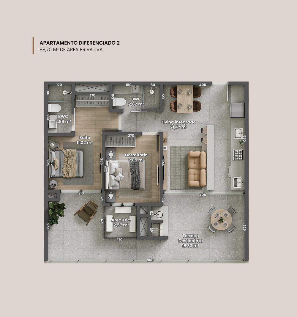 - Área Privativa: 88,70 m²