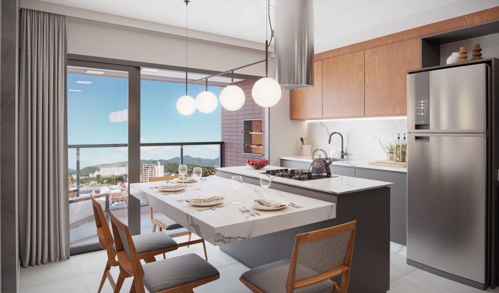 Sala de estar e jantar integradas;