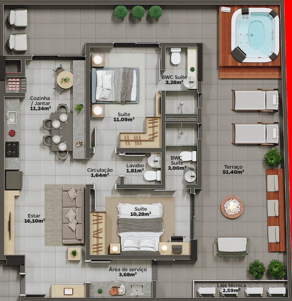 - Área Privativa: 127,52 m²