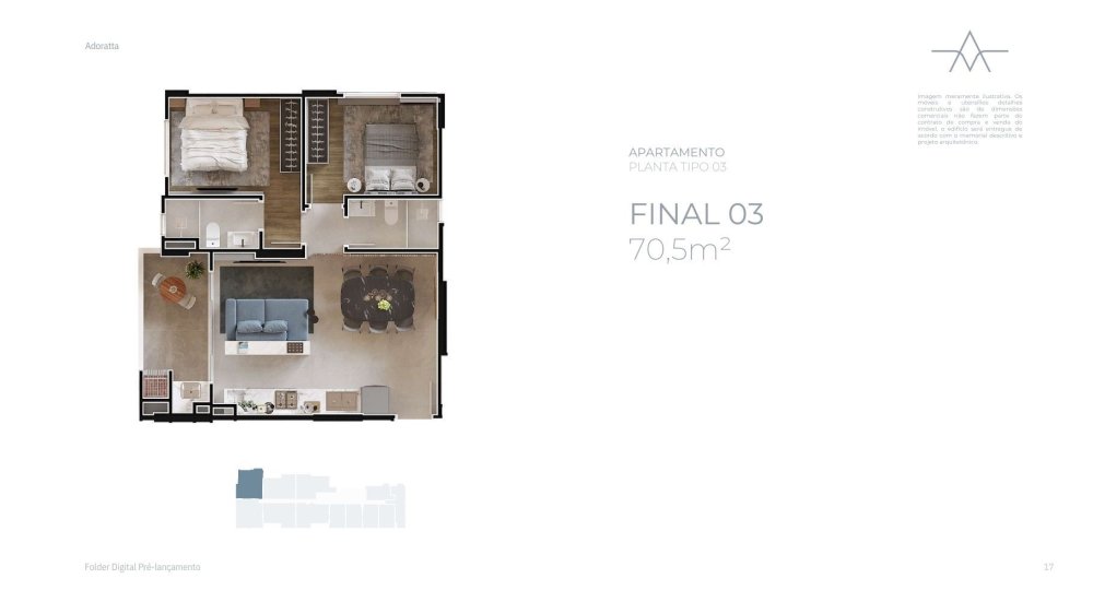 Apartamento com 70,53 m² , sendo: