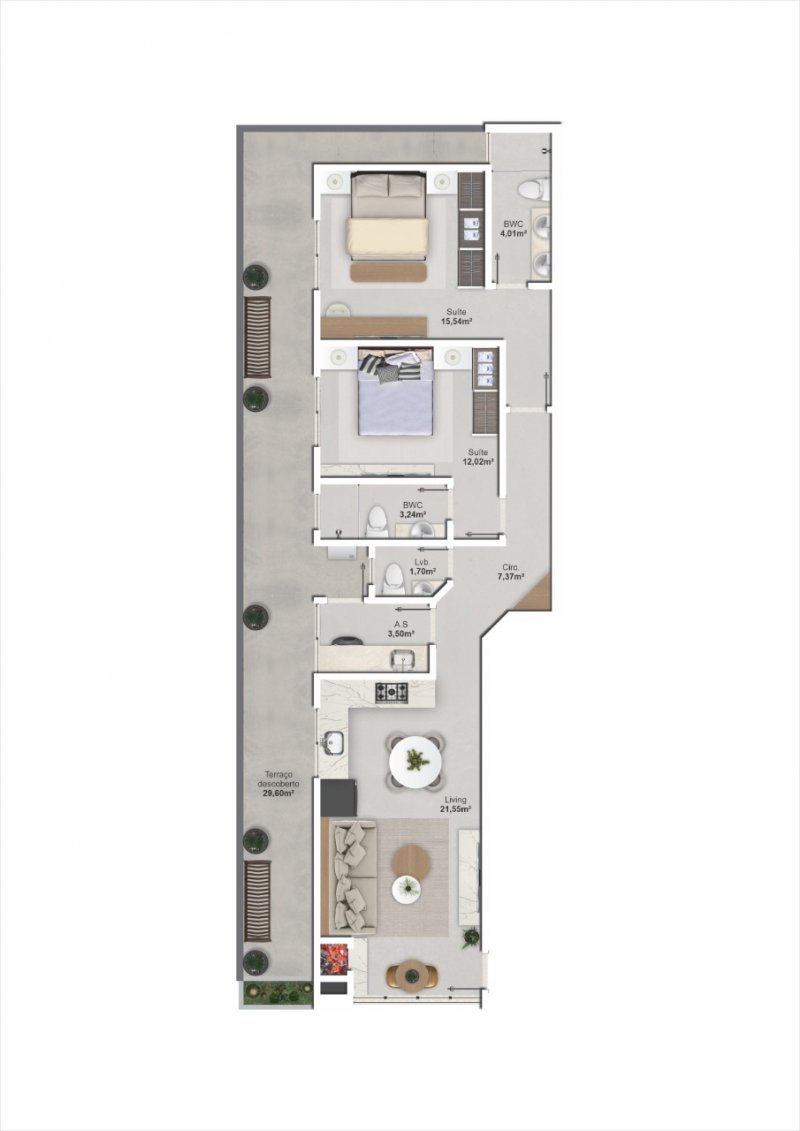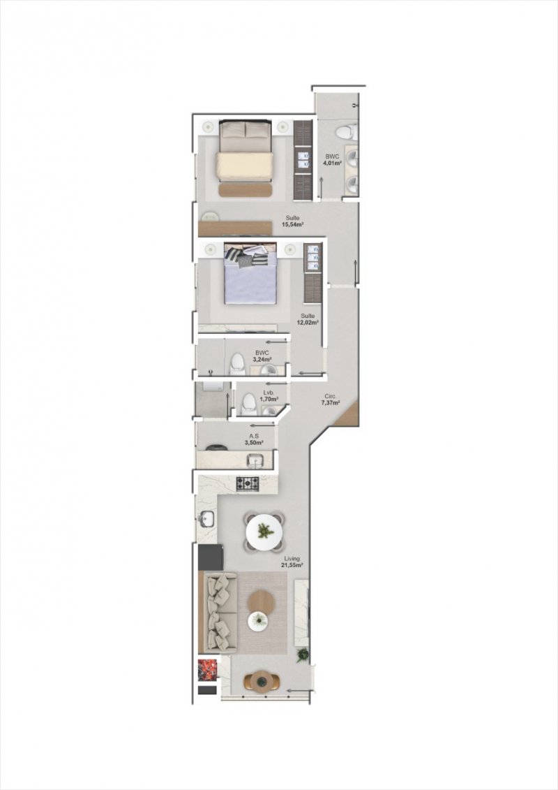 Apartamento à Venda com 2 dormitórios, sendo 2 suítes, 76,26 m²