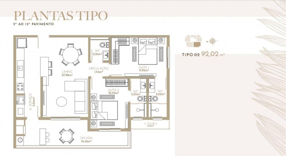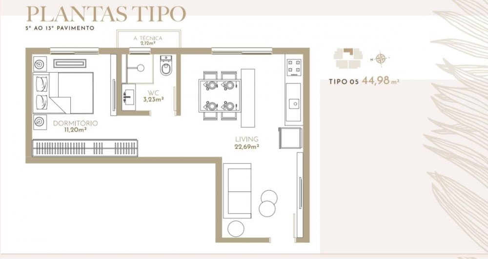 - Área Privativa: 44,98 m²